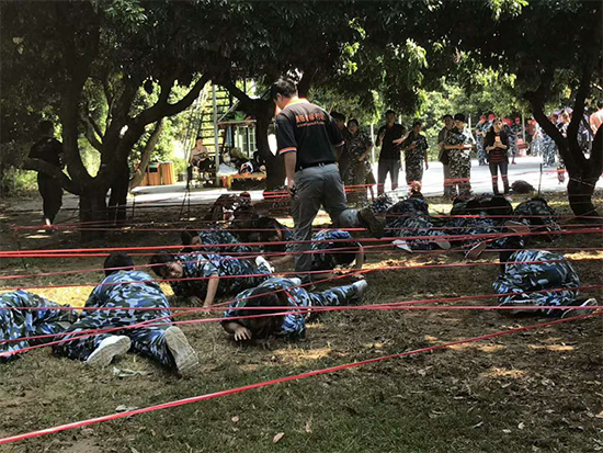第二个项目是“人间炼狱”,分别由两个人双手和对方紧紧握住,形成一条人工长梯,然后每个人都要从上面爬行通过。这个活动给我的感触最深,当自己的手握住队友的手向前攀爬时,感受到满满的温暖和力量,队友们承载的是支持和痛苦。当自己快爬不动的时候,看着周围两行齐刷刷鼓励的眼神,想着自己多停顿一会,就会给队友多带去一丝痛苦,咬紧牙关继续前行。队友中还有55岁的公司老板,可是他丝毫没有因为自己的特殊,和大家一样努力,坚持到终点。最后每个人都顺利通过考验。